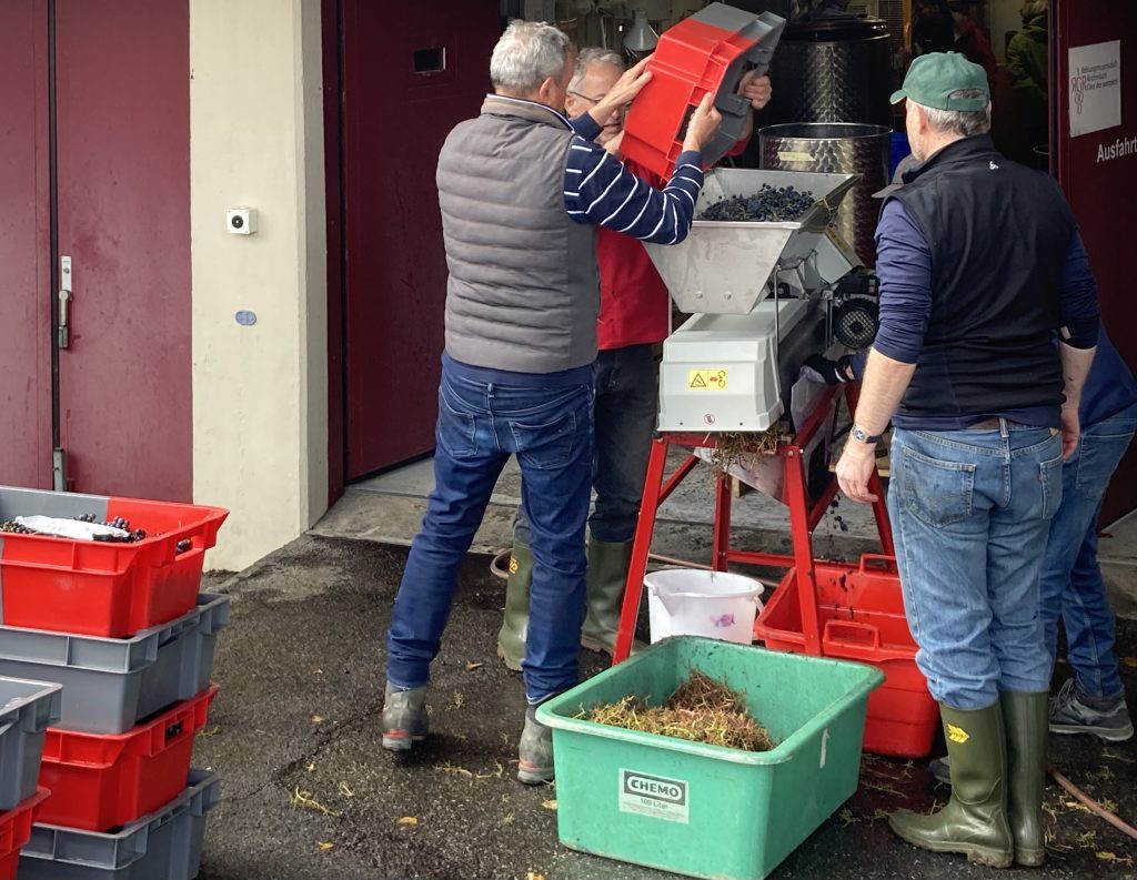 Eine Woche zuvor waren die Johanniter- und Cabernet-Jura-Trauben geerntet und in den Keller transportiert worden, zwei Wochen zuvor der Pinot Noir und ein erster Teil des Cabernet Jura.